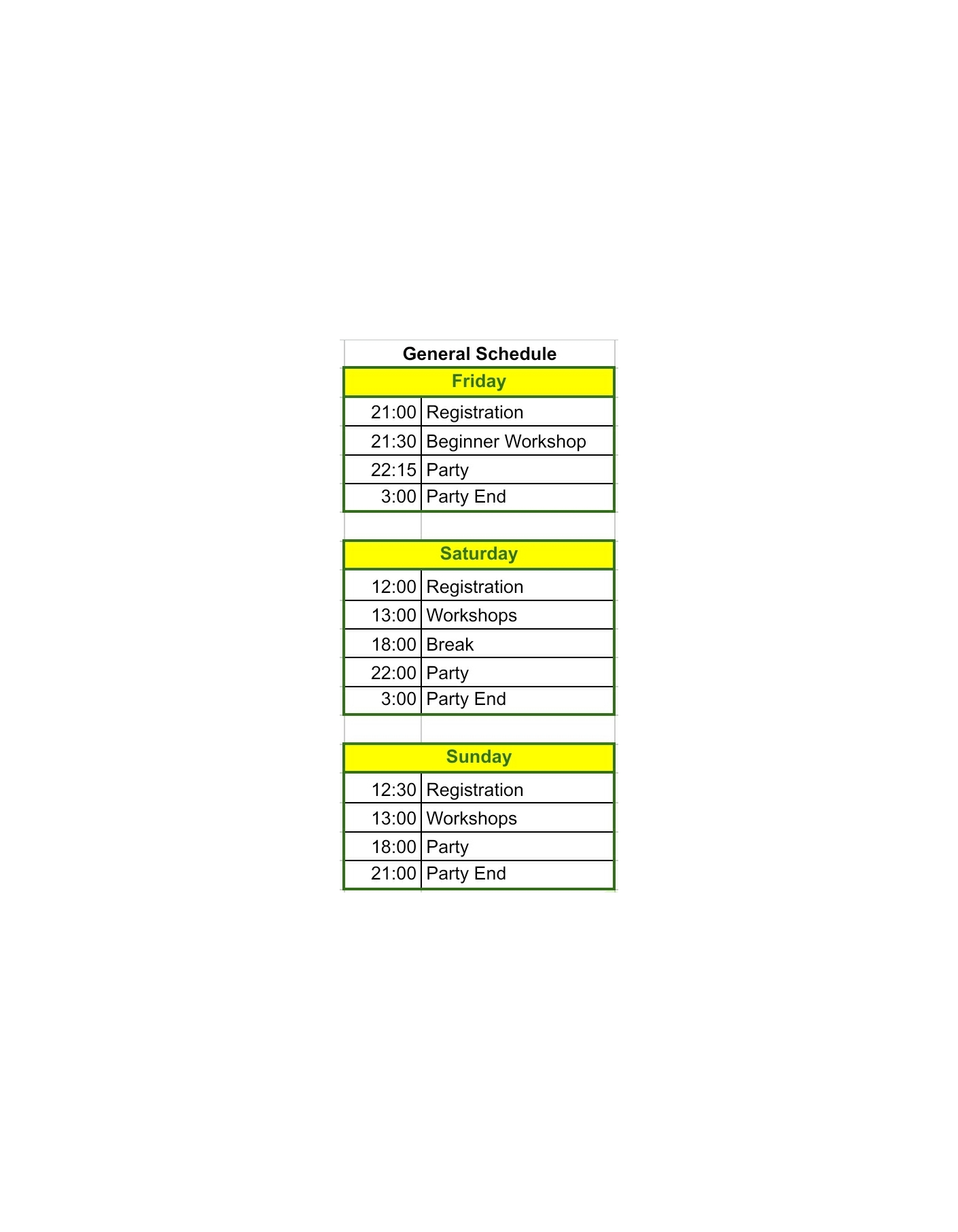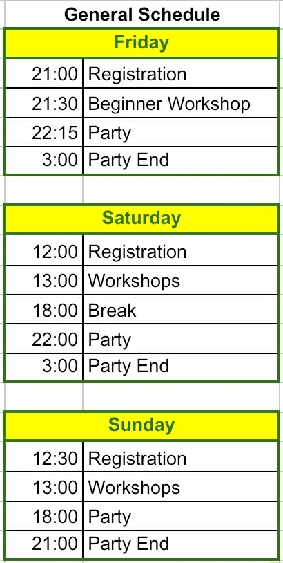 *Free access to classes for MAC approved! Only the entrance fee to the parties will be charged (Party Pass).